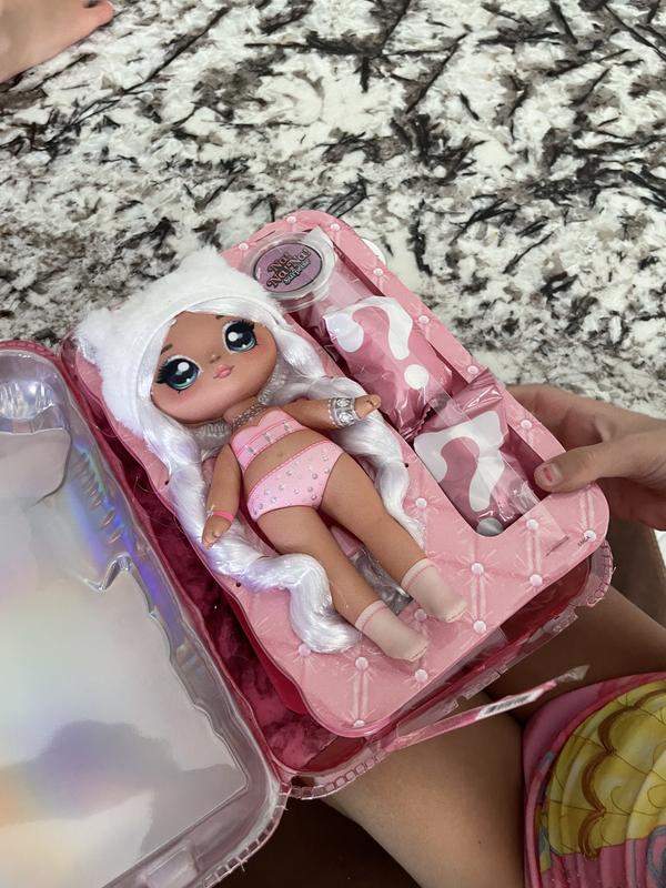 I received my Na!Na!Surprise Sweetest Hearts Doll ! My girls love these dolls and being of same faily as the Lol dolls its makes collecting and sharing so much fun. We received April this time..so pretty all in white..being a collection of 6 dolls my girls each are aiming to fill their collections. Na!Na!Surprise Sweetest Hearts Doll are soft with long beautiful hair they can brush but the beanies do not come off lol so they stay very nice..We love these special friend dolls and as a family highly recommend Na!Na!Surprise Sweetest Hearts Dolls!