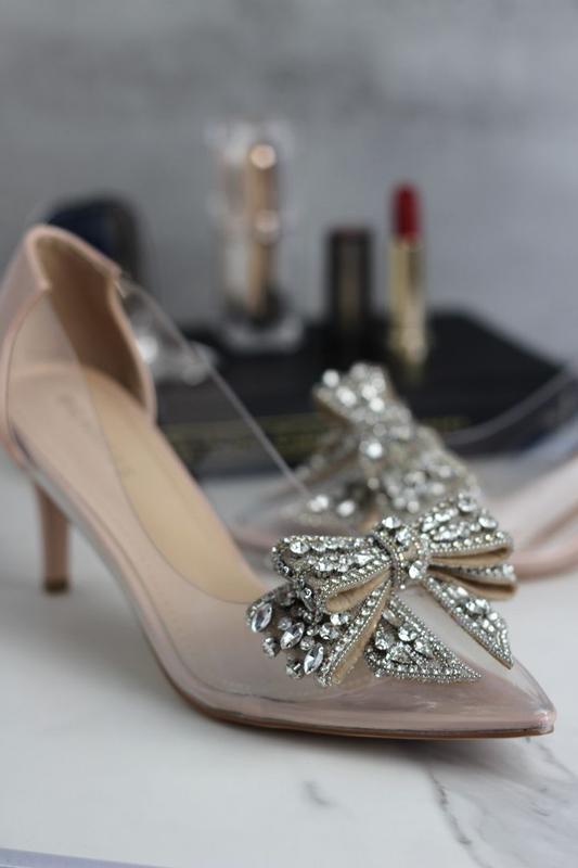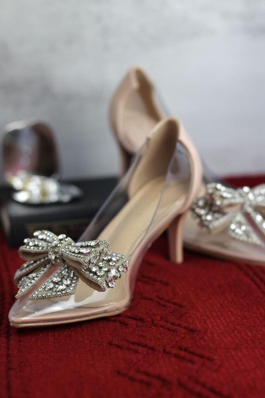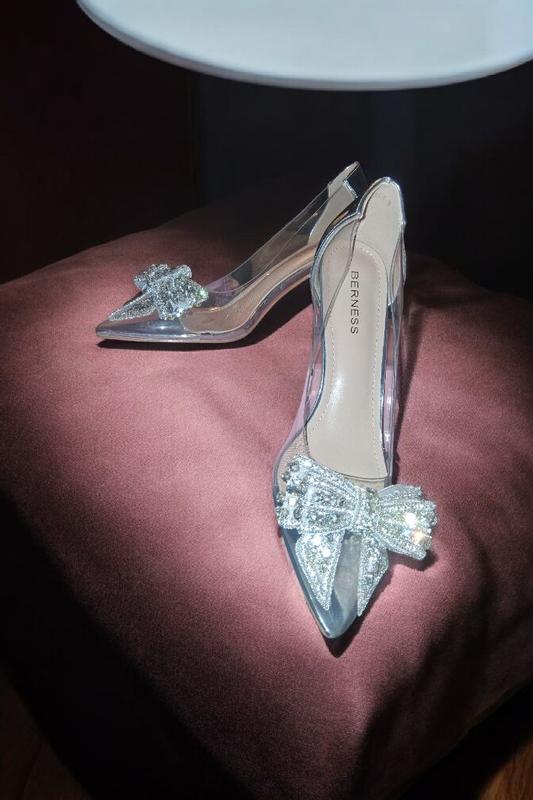 The BERNESS Nala Clear Heels with the oversized crystal bow are a true statement piece. The clear design looks sleek on the foot, and the crystal bow adds a glamorous touch that really pops, especially in photos. They rely on fit rather than straps for security, so sizing is key. Once on, they feel stable for walking and short events. The bow feels securely attached, but because it’s bold and detailed, you’ll want to be careful around delicate fabrics. The fit is slightly snug, especially at the toe, so sizing up helps with comfort. The crystals are clear and sparkly, giving a luxe look. Overall, these heels are perfect for special occasions when you want something elegant and eye-catching.