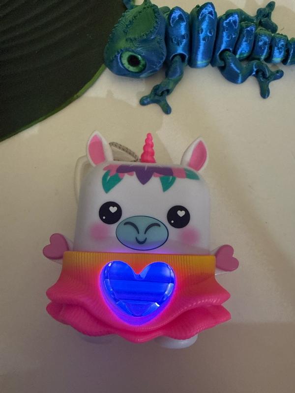 My 6yo had a lot of fun with this fidget toy, there’s a few different things to do like feed, play, dance and sleep to increase the heart level then it will play music and make a rainbow heart. It’s a bit noisy but you can make it go on silent mode by pressing and holding the nose. The narwal is so cute, it’s quite lightweight, seems durable, and you can clip it on to a bag.