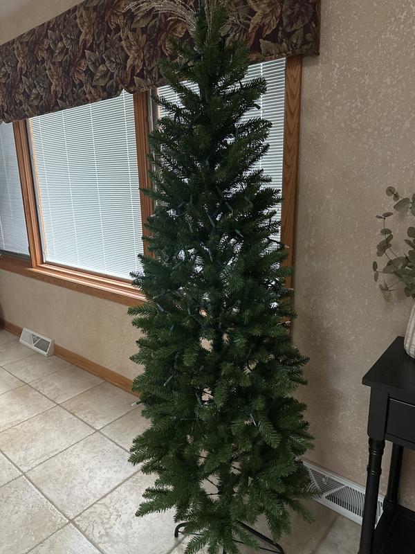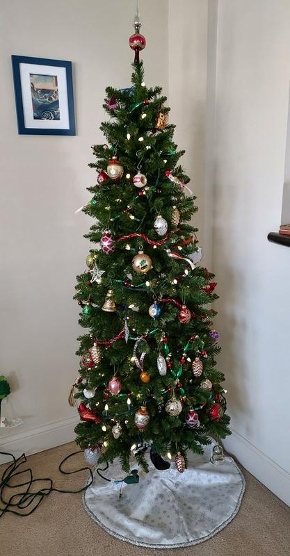 This is a great tree for our apartment. It is tall but skinny, so it looks nice but doesn't take up too much space. It looks like a real tree. We are happy with our purchase.