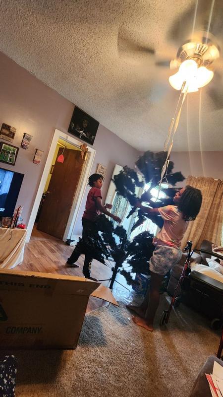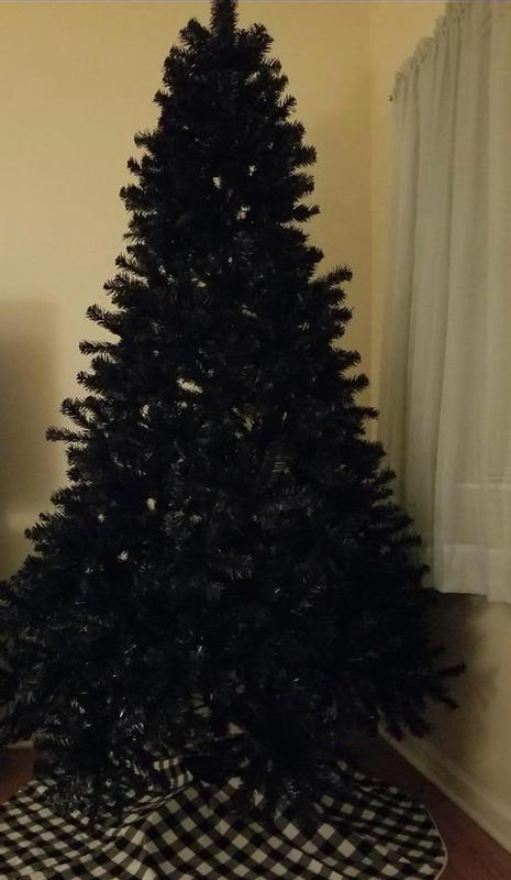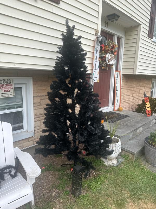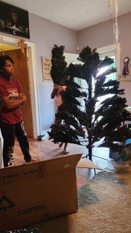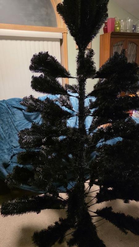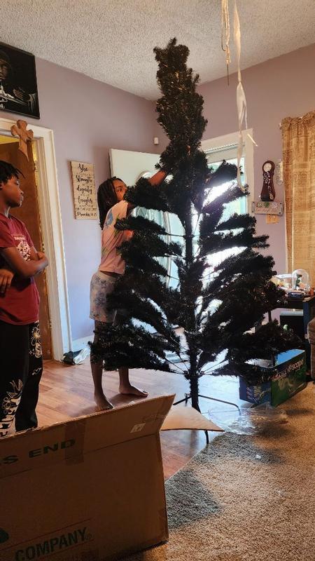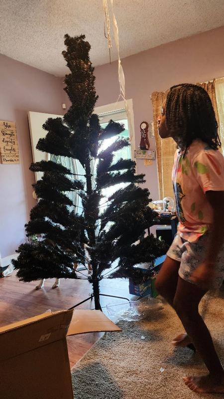 This tree would be awesome if it came in green! It was easy to set up and fluff. It’s gonna be a perfect piece for a Halloween tree since it’s black. The size is perfect. It’s taller then me and my husband. It’s full and perfect