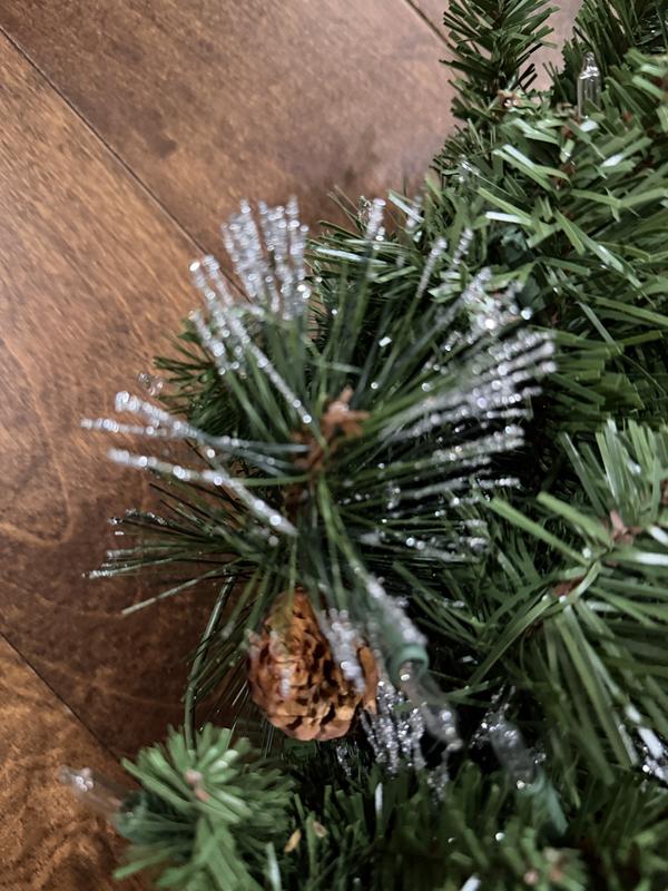 It’s an absolutely glittery MESS!!! Too much glitter that now it’s all over our front door AND garage (where we were removing it from the box). The design is pretty, but man… the glitter is the deal breaker. I also hate that the only way to make the lights work is to plug it in!!! Battery would have so much more convenient. Who wants to run wires through their door?!