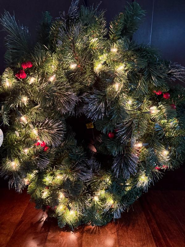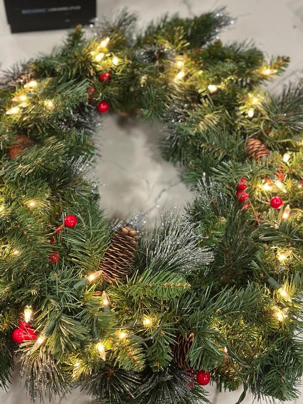 This 24" Pre-Lit Crestwood Spruce Wreath is beautiful! The mixed bristle tips, pinecones, red berries and subtle glitter make it look full and festive without being overdone. The 50 clear lights give a warm glow and I love that they stay lit even if a bulb goes out — so convenient. It was easy to hang on my front door and instantly added a welcoming holiday feel. Really happy with the quality and how sturdy it feels; I can see this lasting for many seasons. Highly recommend for anyone wanting classic, cozy Christmas décor! I’m so in love with this wreath! Highly recommended!