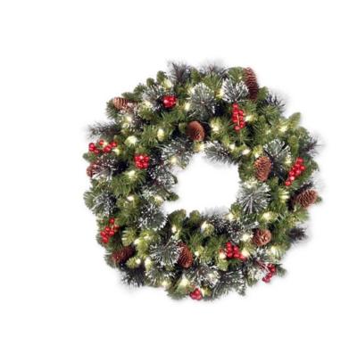 24" Crestwood Spruce Wreath With Silver Bristle, Pine Cones, Berries, Glitter & 50 LED Lights