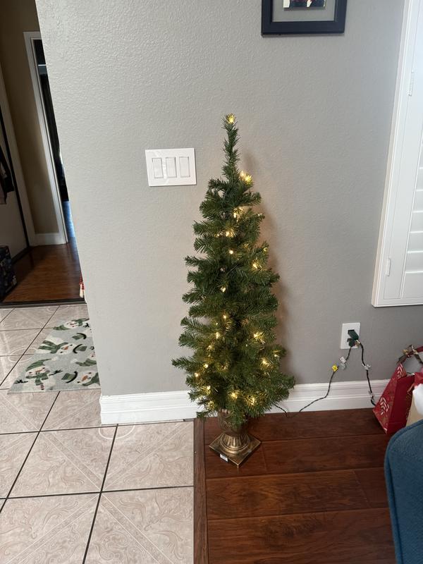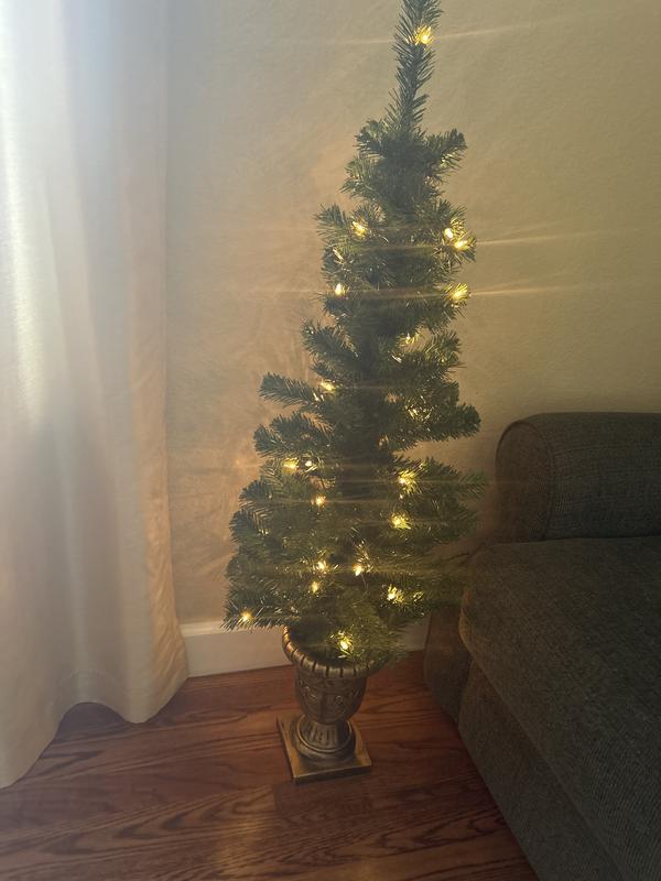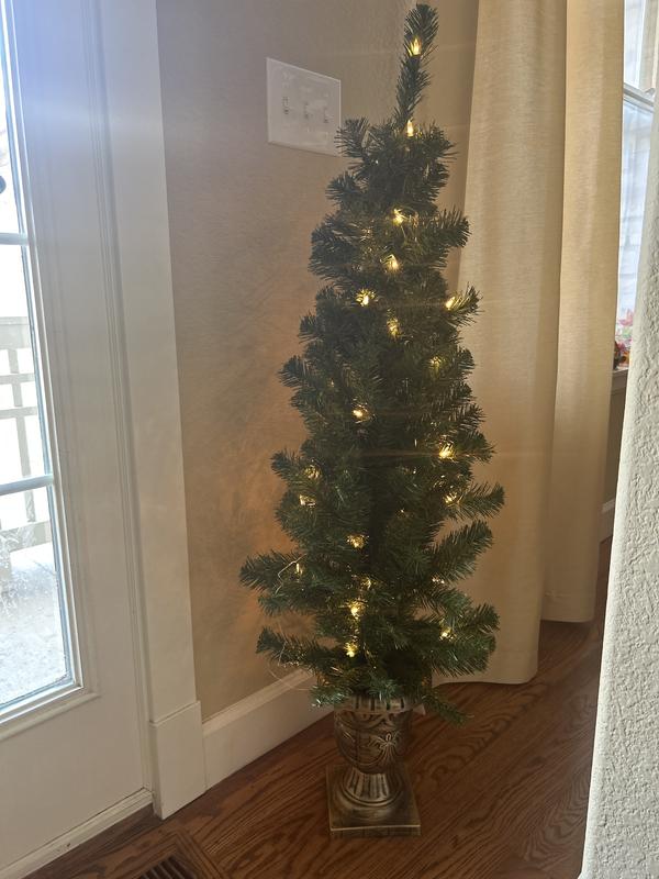 4' Montclair Spruce Entrance Tree in 10" Black/Gold Plastic Pot with 50 Clear Lights