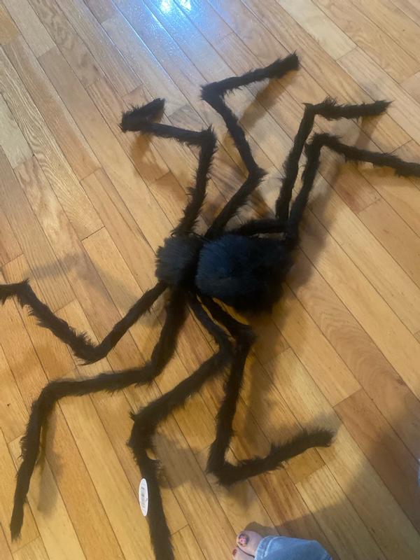 The spider is a soft faux fur, with legs that are probably 2 feet long. The legs all fold in on themselves for easy storage. My 3 year old loves to play with it and get scared by it. It stays on a faux web very well and scares people with arachnophobia perfectly!!🤣 it’s soooo worth it!