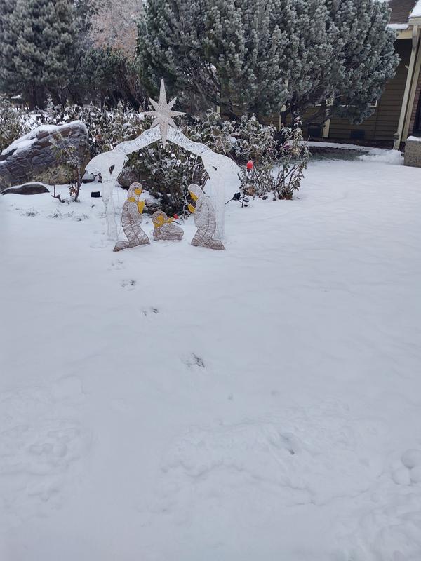 This nativity scene is a great addition to our decorations. The only two complaints that I have is that the stable seems to lean back further than I would like and the package came with a couple less stakes than were indicated in the instructions.