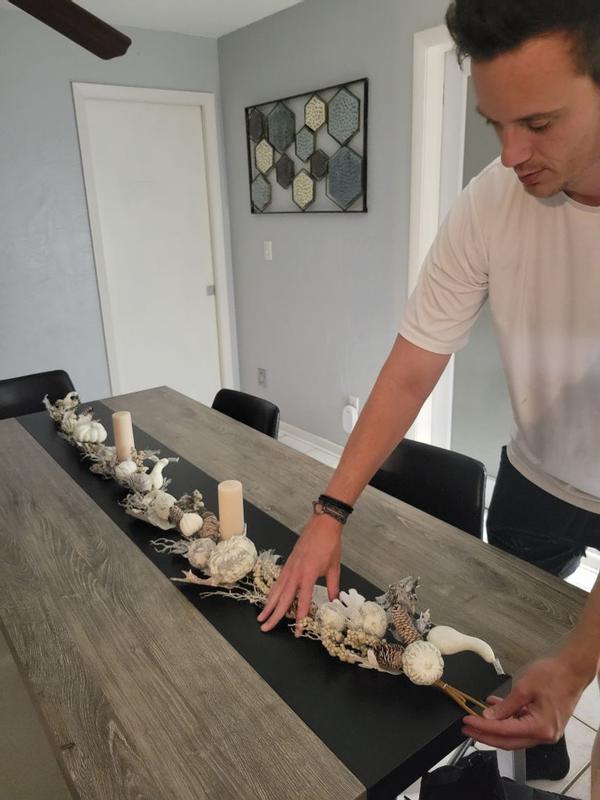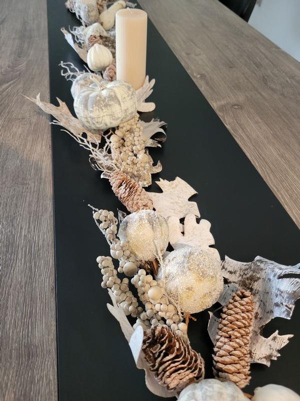 This is such a beautiful fall decor item. I love the way it was packaged and nicely and it’s easy to store away I loved the little pumpkins and the gourds and the white. Effect of it brush the branch is flexible and not too loose so you can bend and maneuver it to fit which ever way you want. I love that when I was putting it up there was not any type of fallout from the decorations or breakage I think has great durability and it’s a great addition to any fall decor, reasonably priced it can also be used as a part of a table runner. I decided to put it over my door because I wanted it to match my already existing fall decor.