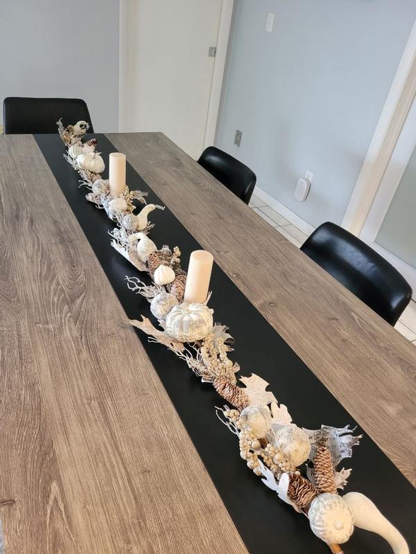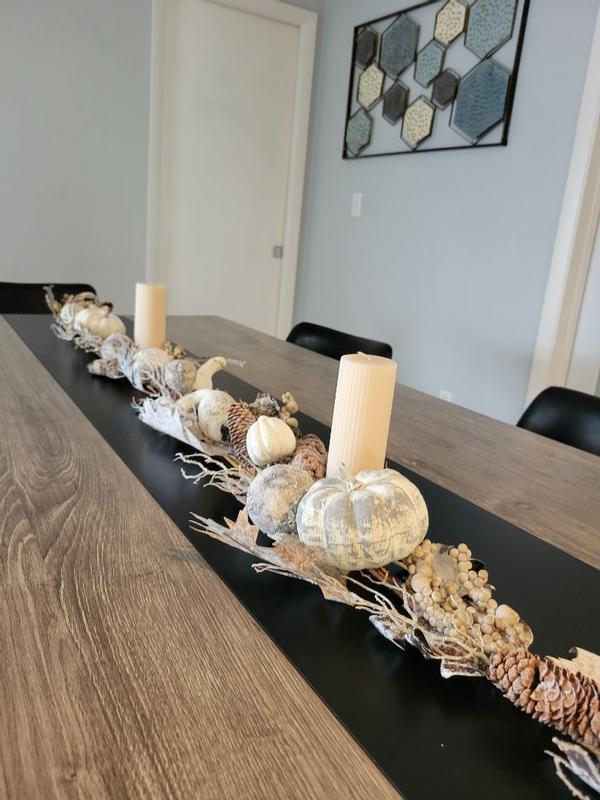 The 72” pumpkin and pinecone garland is decent, but it didn’t look exactly like I had imagined. The overall design is nice, but you can see the metal parts holding it together, which takes away from the natural look.