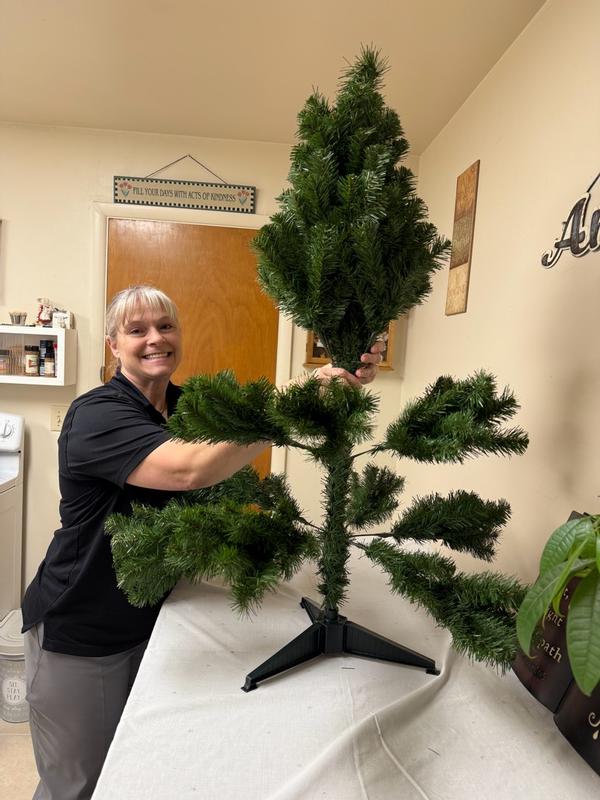 Assembly was easy, this will not fool Santa as the tag says it’s good enough to fool Santa. It is a nice little tree but has quite a few bare spots. Wouldn’t waste my money.