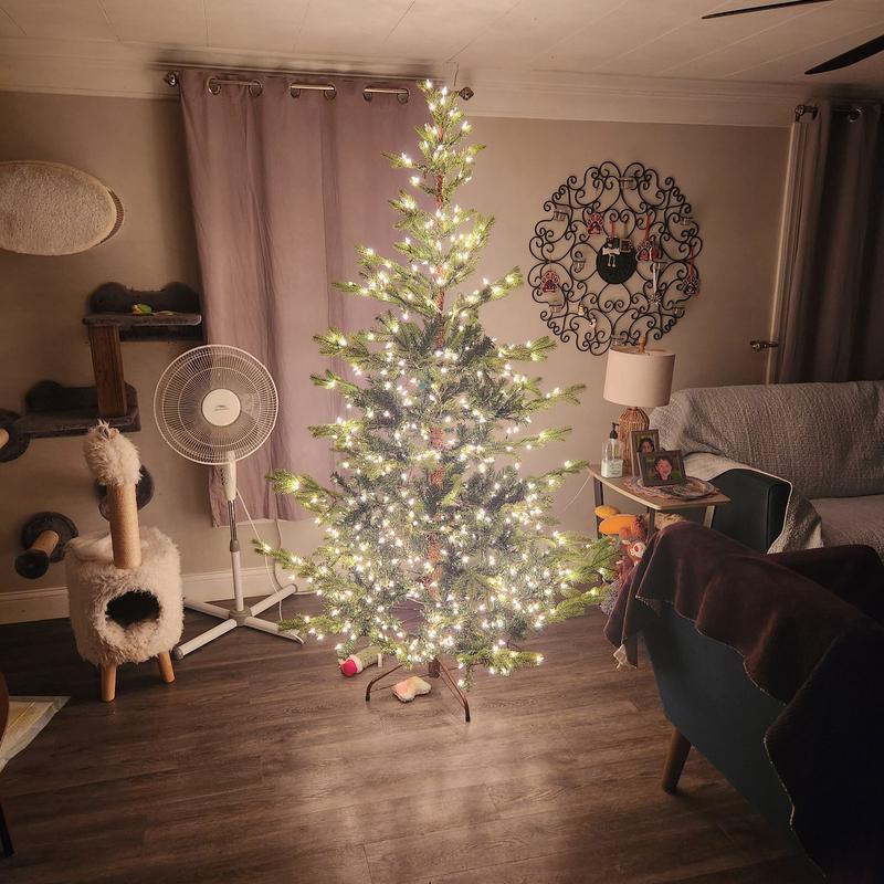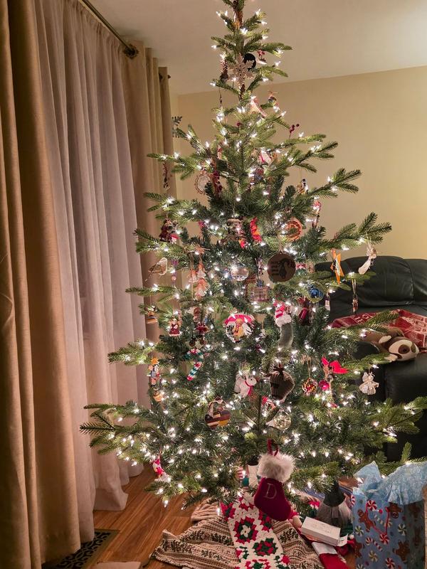 We weren't able to get a live tree at the very last minute, and are thrilled to have stumbled across this one. It's VERY realistic (a must for us), a perfect size, and easy to put together. LOVE all the lights. BONUS - they shipped it quickly so we could enjoy it more. 💚