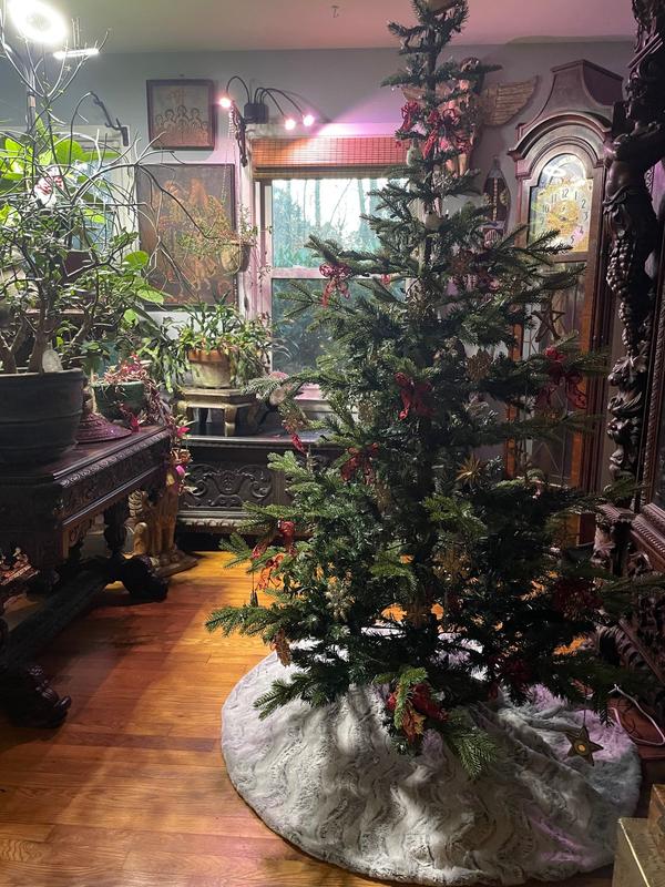 I’ve had a lot of trees, and while they were beautiful, they were not this beautiful. I love the realistic tree, so if that is your style, then this is the tree for you. If simplistic and realistic aren’t what you’re looking for, then she’s not for you. The most striking thing about this tree is her trunk. I loved that it was substantial, on the thicker side and looked and resembled a real tree trunk. It leaves beautifully, although it does need that pestering fluff. It’s sturdy and there’s the perfect amount of lighting. The lights give a warm, elegant glow. But I also loved about this tree, is the several that I have owned in the past and or have seen in real person while shopping, had a top where the branches just weren’t branching. But the top of this tree looks like it was cut from the forest. The price point was perfection. I am so in love with my tree. I have not finished fluffing her or have decorated her, but I’m sharing photos of what I’ve done so far just to give an example. I highly recommend 10 out of 10.