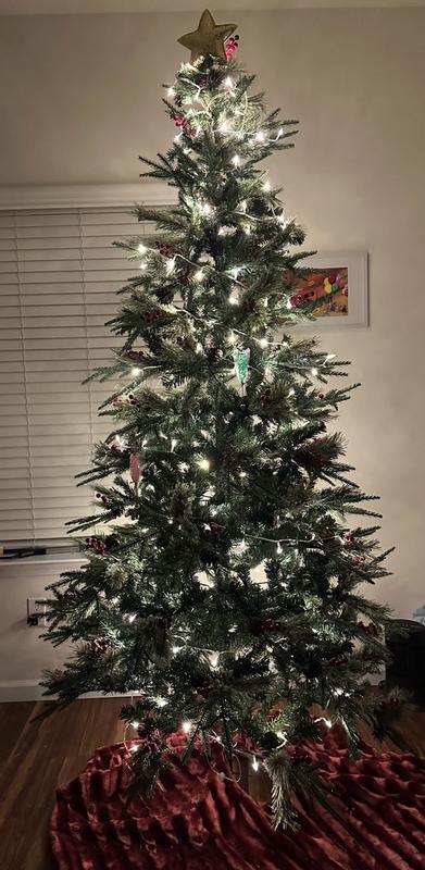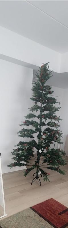 The tree setup was so fast especially because the berries and pine cones are already attached. Going thru the ornaments, I only had to put up a box them and 2 strings of lights leaving the tree looking full and joyous. It’s 7.5 feet tall which is the tallest one I’ve owned but it fit perfectly in my living room.