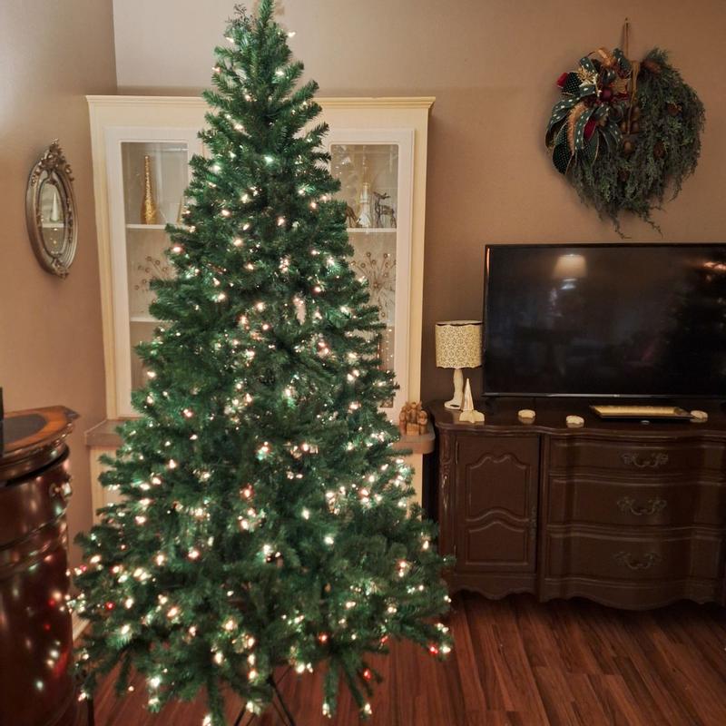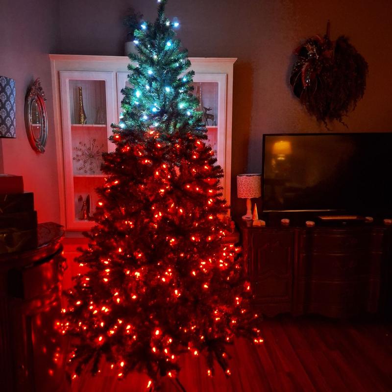 I love a quick easy set up for a Christmas tree. This 7.5 is a great size for a smaller space and easy enough for one person to put it together. I wish it was a bit more “full” looking. I like that it has a remote and a bunch of different lighting options however for me I wish the plain white was a little better. It gives off more of a yellow tone than I like. Other than that it’s a nice sturdy tree for years to come !