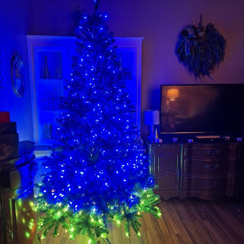 I absolutely LOVE the tropical teal on this Christmas tree; it’s my favorite feature on a tree I could get. As we put up our tree in southern Florida in shorts, it matches the whole vibe of our home. I don’t love that it’s not as full as other trees and it has no outlet to plug in our star at the top of the tree. That’s very frustrating as I had to run an extension cord up the tree and can’t leave it plugged in without risking fire. Overall, it’s a good tree and looks nice but could have some more features for the price point. It’s lightweight, sturdy and easy to put up.