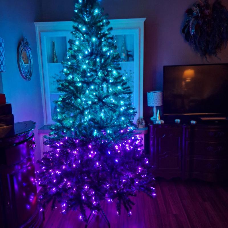 This tree is a lot fuller then the ones I had in the past which I like you don't see right through the tree. Took about half hour or so to set up and spread out the branches. Only thing I wish was that it had a setting on the lights to just have solid multicolor. Seems you can only do one color at a time .