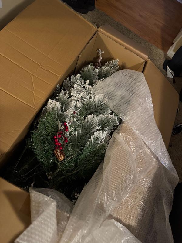 Absolutely in love with this tree, the white snow is so gorgeous 😍. It was really easy to install, only took about 10 minutes. I was worried that it might have broke in the transit because the box had a tear but the tree itself was totally fine. The size is perfect for my house, I was going to get a 9ft one but the 9ft would have been too big so I am glad that I got this size!. The pre installed lights are very convenient and it will make it easier to reinstall it next Christmas. The quality also looks good, the snow does fallout a little bit but I was already expecting that so it wasn’t a big deal for me. I kept the box so I can store it in it after Christmas, it wasn’t heavy so I think it will be easy to move and store in the future!