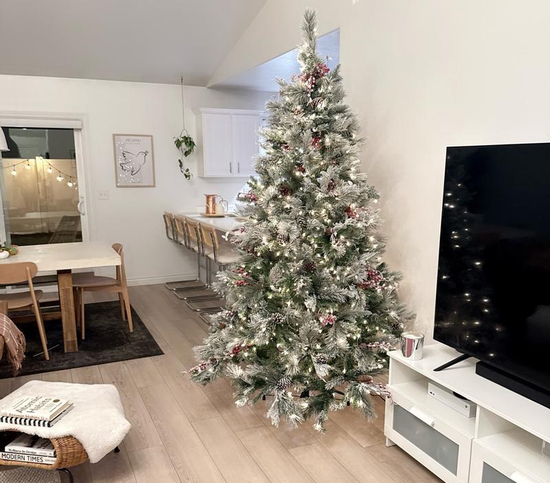 The National Tree Company 7.5 ft Pre-Lit Snowy Bedford Pine Tree completely transformed my living room into a winter wonderland. The snowy branches look so realistic and elegant — not “fake frosty,” but soft, fluffy, and beautifully textured. It has the perfect amount of fullness, and once it’s fluffed, it looks like a high-end designer tree. The clear lights are bright but warm, giving the coziest Christmas glow. I love that the lights are already perfectly distributed — no need to fight with tangled strings! Setup was truly easy, and the pieces fit together smoothly. Even the stand feels sturdy and secure. What surprised me most is how high-quality and realistic this tree looks in person. It photographs beautifully (perfect for holiday pics!), and every guest who has walked in immediately asked where I got it. If you want a tree that feels luxurious, festive, and effortless, this one is worth every penny. I’m obsessed! 🎄