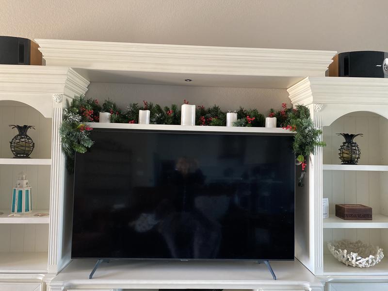 The garland is thick and heavy, looked great over the top of our bookcase. But Less than 2 weeks later, half the lights don’t work. So disappointed.