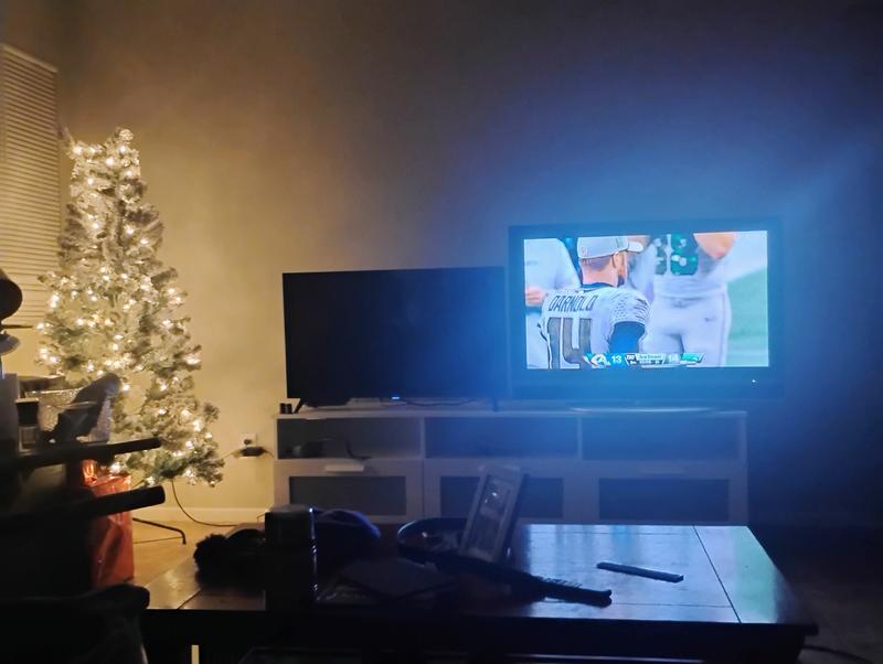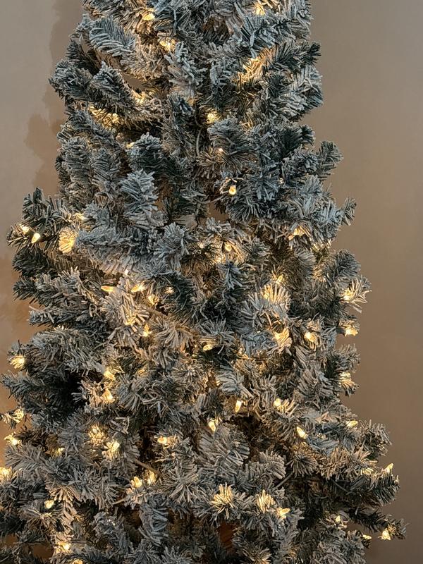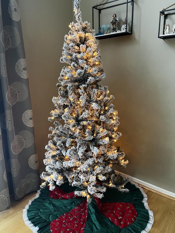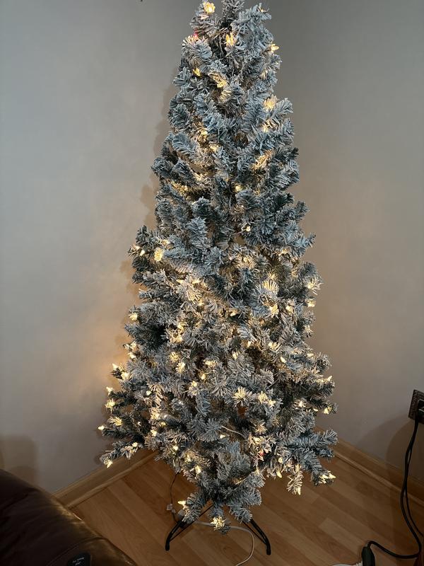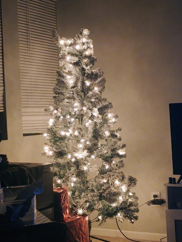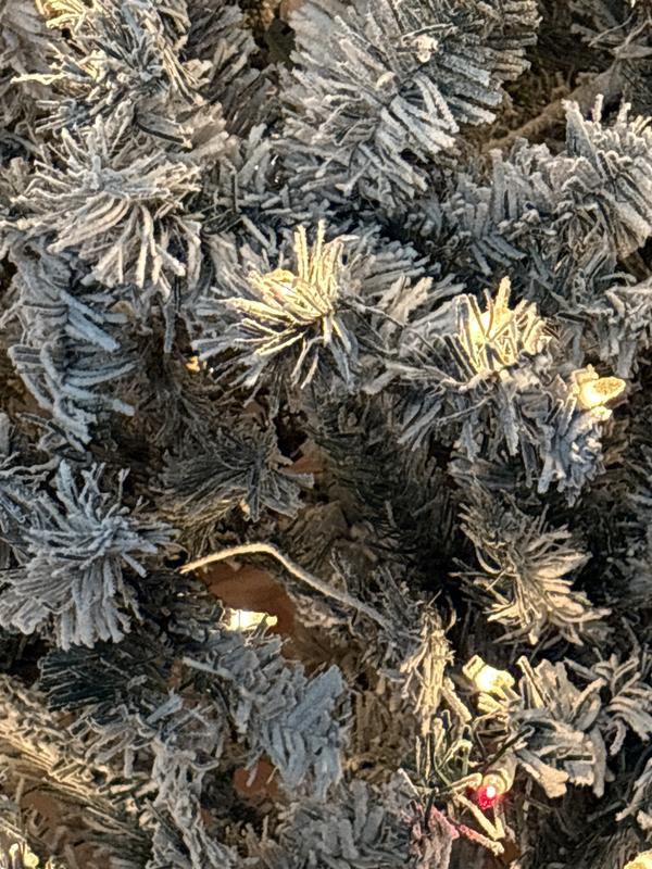 This beautiful flocked evergreen tree is exactly what I wanted for an empty corner in my living room. Extremely generous flocking and over 300 white lights. Not LED lights so it adds the ambiance to the room I was looking for. No need to decorate or add anything to this tree. It’s pretty on its own