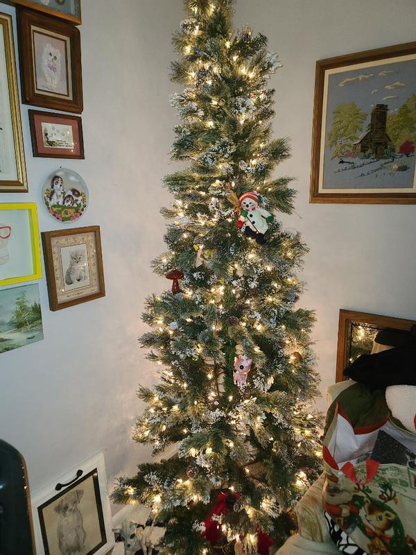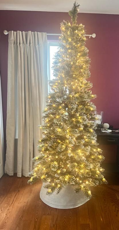 Absolutely love this tree. It’s slim but tall and fits perfectly in the spot my daughter picked. Super easy to set up and absolutely gorgeous. I love that it looks like it has snow on it along with the glitter. The only negative is glitter did get all over setting it up but it’s to be expected.