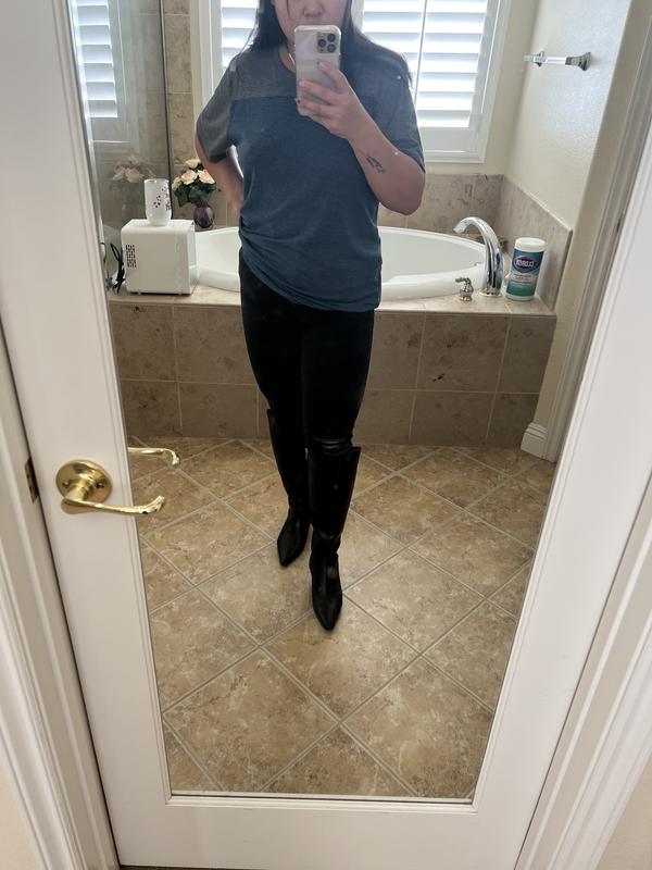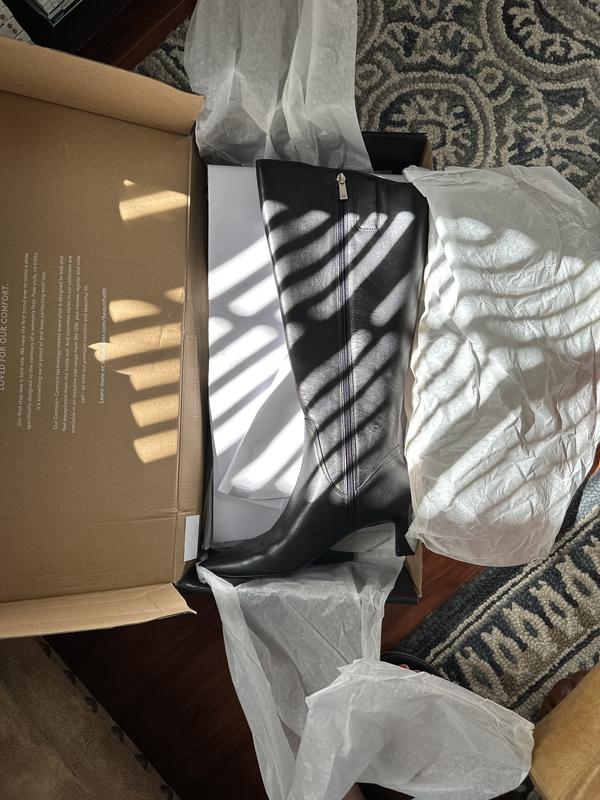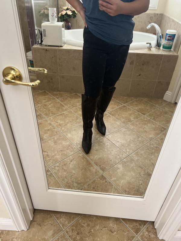 These boots are gorgeous with a perfect heel night! I struggle with tall boots — I find the shaft on medium width a little too snug, yet these wide shaft boots are a little loose. I opted to keep the wide shaft boots simply because the mediums were out of stock; I had hoped mediums might stretch enough. Otherwise, the boots are ideal!