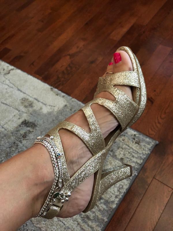 I wore these for my Daughter's wedding with a long navy dress. These are very comfortable! I was surprised and was able to walk around and and dance in them all day and into the night. A bit blingy but very nice.