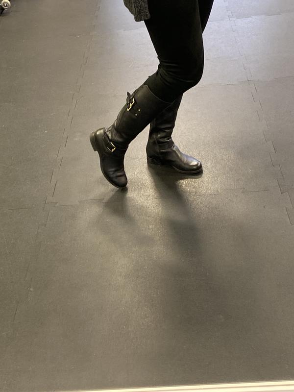 I sized up a half size and these are just a little big but will be perfect with thicker socks.I ordered my usual.size 8.5, too, and they were too snug. Nice quality leather. I love the buckles! After a longstanding search for tall black leather boots, I finally found a beautiful pair, seemingly good quality, for a decent price.