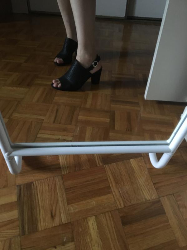 Wore these for 1 hour today and my big toes were really to fall off because of the rubbing against the peep toe. every other aspect of this shoe was comfortable and the heel was a good size! I was shocked when i went to put them on that I didn't have to find the "hole" for the clasp as it is VELCRO! brilliant. Really sad I have to return them but I can't live with the pain