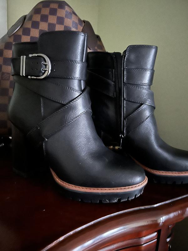 This boot offers fashion, fit, and even comfort. The lug sole, chunky heel, and design details (straps with buckle) make for a great look.