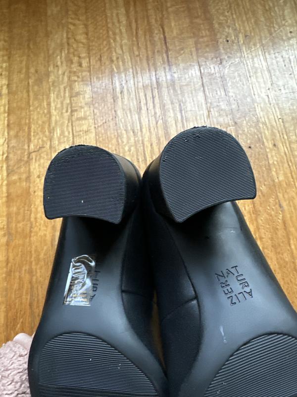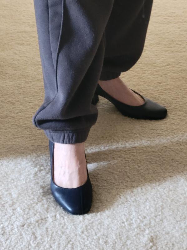 Uncomfortable to walk in. Shoe slips in & out, almost impossible to walk straight up.