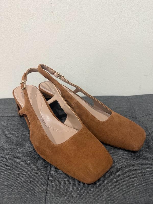 These Carmen sling back shoes are very fashionable and comfortable. I ordered a size 10 and they fit perfect, the shoe is true to size. The heel size/height was just right for me and I love the material is nice and soft the shoe looks very expensive.