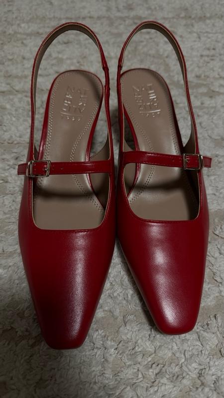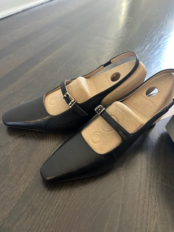I absolutely love these shoes! The design is such a perfect mix of classic and modern — the square toe and slingback strap make them look super chic and elegant. The leather feels soft yet structured, and they’re really comfortable even after wearing them for a few hours. They pair beautifully with jeans, dress pants, or even a skirt — so versatile for work or going out. I love that they look polished without being too dressy. The adjustable strap helps keep them secure, though if you have wider feet, the toe might feel a bit snug at first.