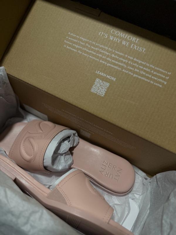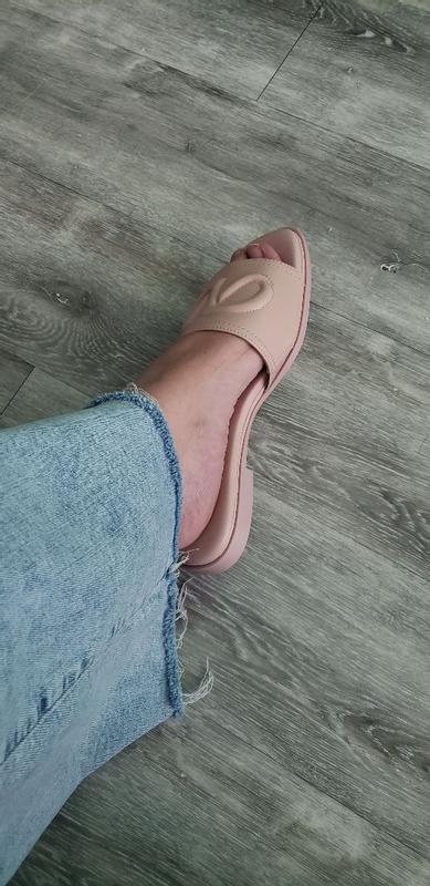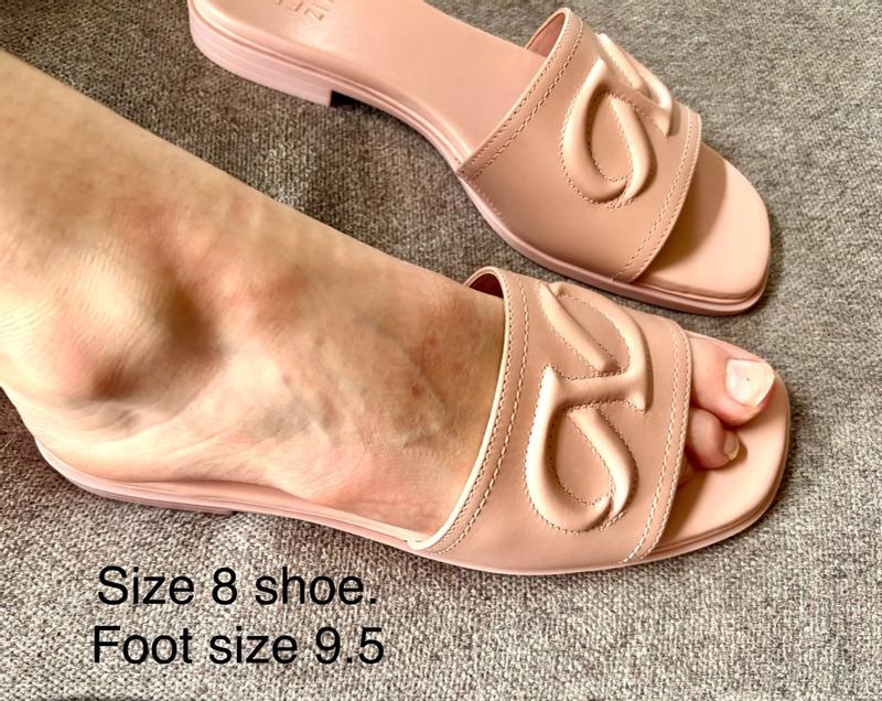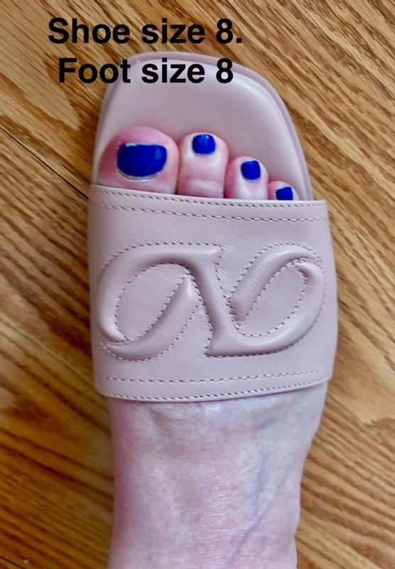 Cute slide sandal. I really wanted to keep the sandal but the lining of the sandal is very plastic like and not comfortable. Other shoes with manmade material for the lining do not feel like this and are comfortable. The width of the shoes is a bit narrow.