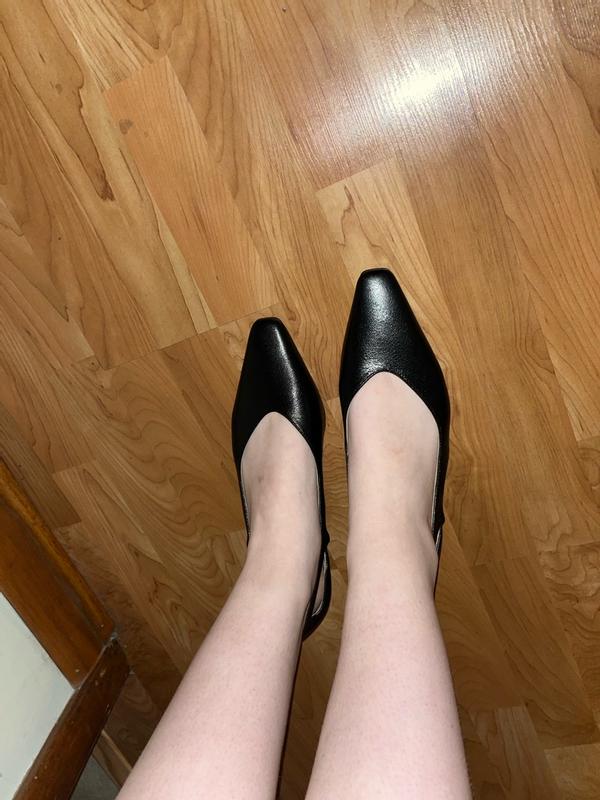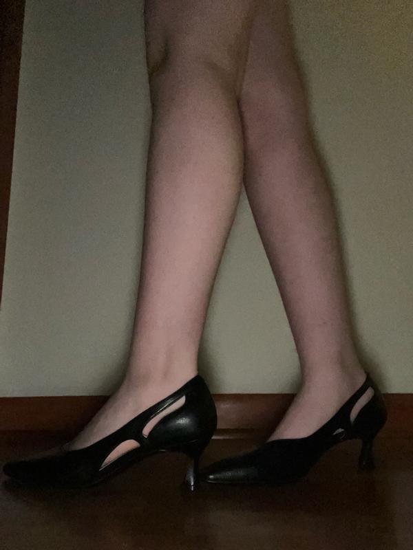 What I love about this shoe design is that it covers the entire toes (which gives a more sophisticated professional look of the foot) and the low height of the heel.