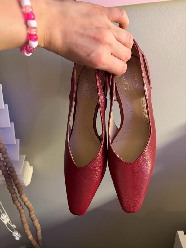 The shoes are a beautiful cranberry collar. However, I ordered the 7.5 which is my regular size and the shoes are very long in the front. I have at least another half an inch of space and they are not comfortable. Sadly, these are going back.