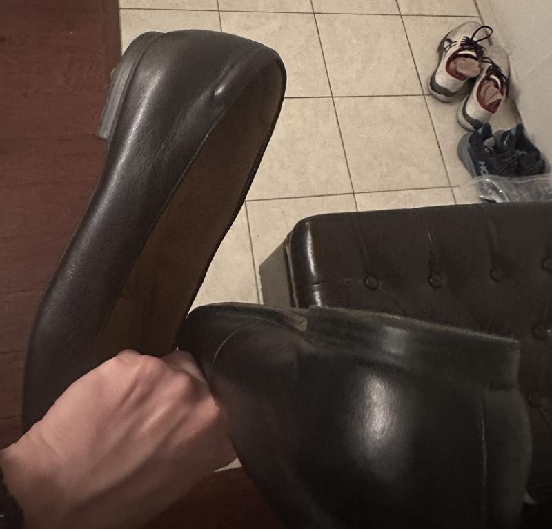 There are nice shoes--comfortable at first wearing, HOWEVER: the leather upper, is prone to easy scruffing--if you are up and down on your feet, chasing after little ones, or on the floor alot , and have the shoe on your foot tunred downward, as you kneel, and you in any way scrape or run the toe of the shoe on a hard surface, like concrete, hard flooring or rough surface outside it will peel, scruff and be damaged. I bought a new pair, since my existings ones had this bruised two area on both shoes; withi 7 days of visiting grandkids, the new shoes looked like the old shoes due to this tendency and poor durability in the toe of the leather upper. SO, these shoes are great if you plan to be very very gentle with them in your daily life!