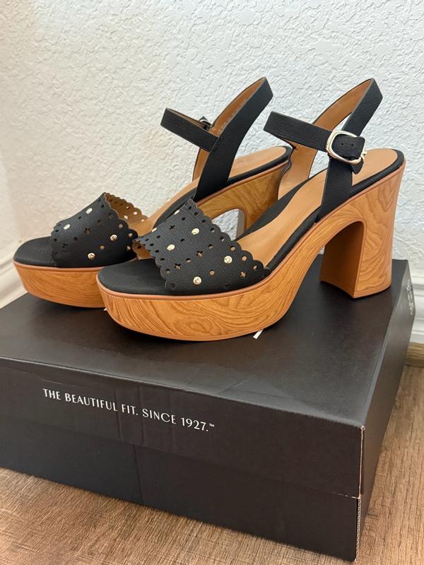 Comfortable sandal. Fit is good. I wear a 6 or 6 1/2 depending on style. I have a small thin foot. The ankle strap is good. The foot strap is a little wide. I’m used to flats and wedges. I have a back problem. This sandal had a little more drop than I am used too. It was ok though. I’ll put an extra padding on the ball so it will give me more padding and the strap will fit better. I like the height in the sandals I can wear long dresses.