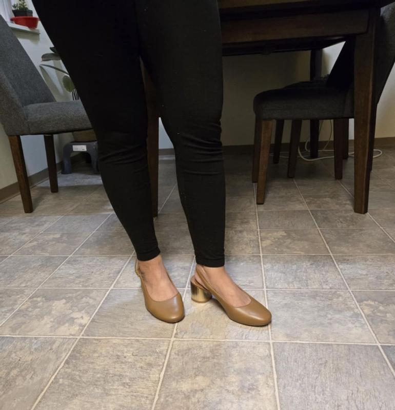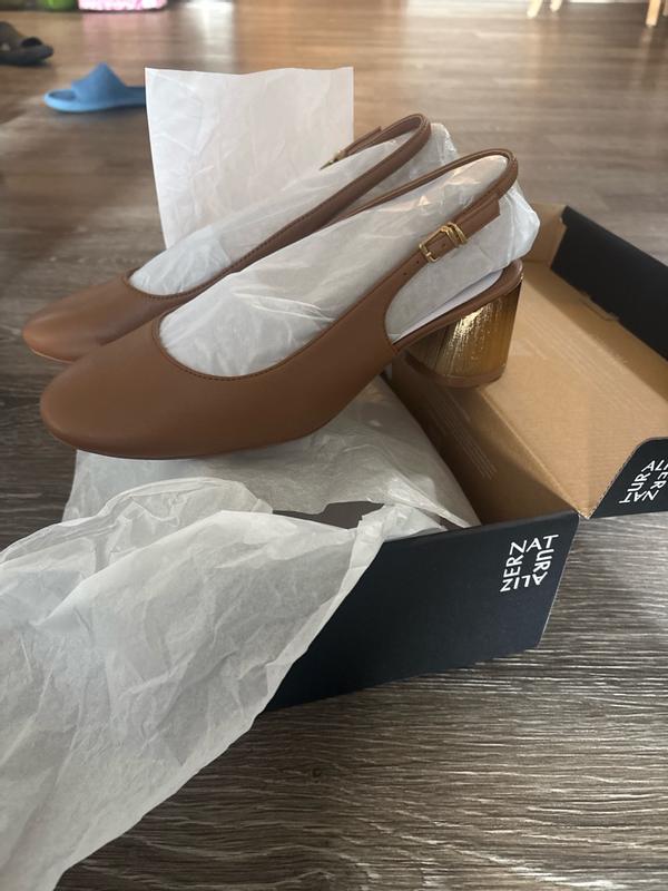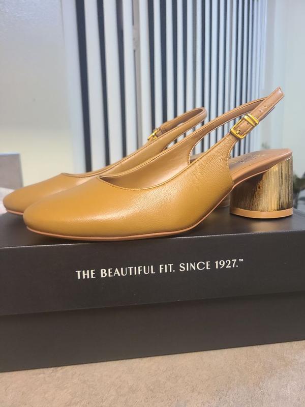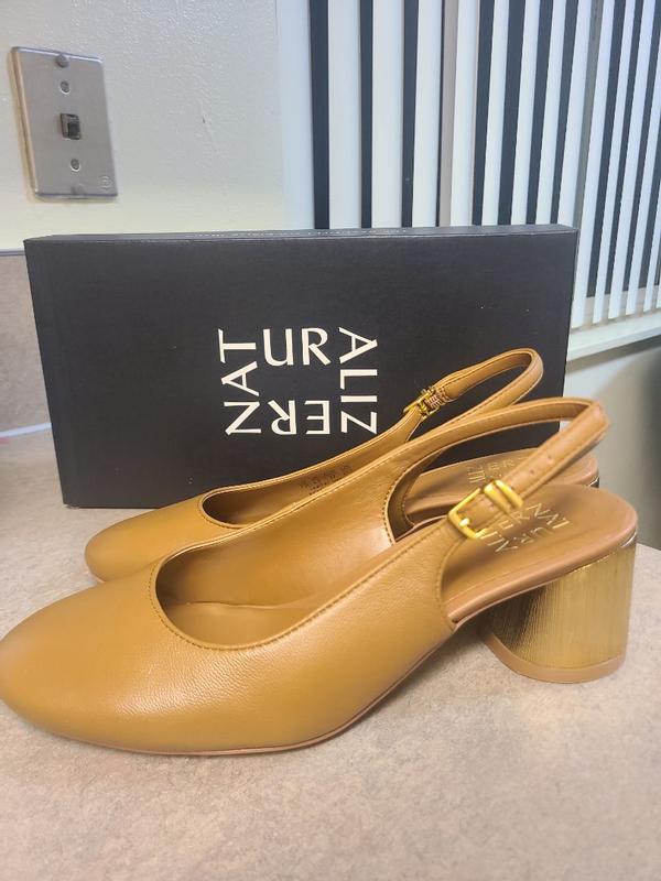 Beautiful gold leather and interesting, upscale heel however a poor fit. I’m usually a 9M for Naturalizer footwear but this shoe was too narrow for me. It’s disappointing in that and I’m a fan of the brand and typically have good luck with boots and shoes.