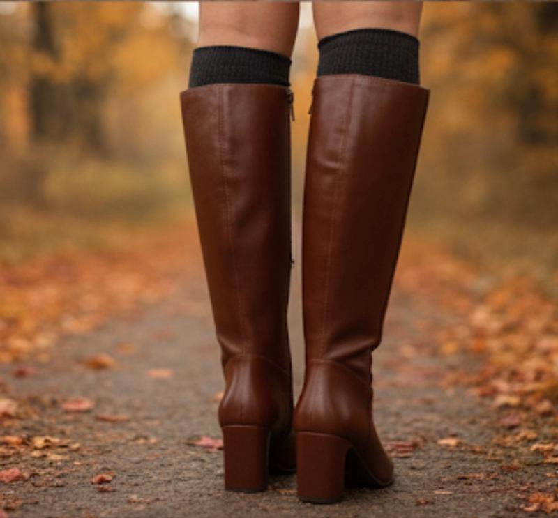 I’m absolutely loving these brown knee-high boots! The sleek design and block heel give them such a classy, timeless look — perfect for dressing up or wearing casually. Surprisingly comfy for heeled boots! The soft lining and stable heel make them easy to walk in. True to size, with just the right amount of room for thicker socks. The color matches beautifully with fall outfits and all the cozy autumn vibes 🍂