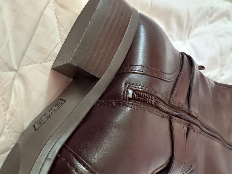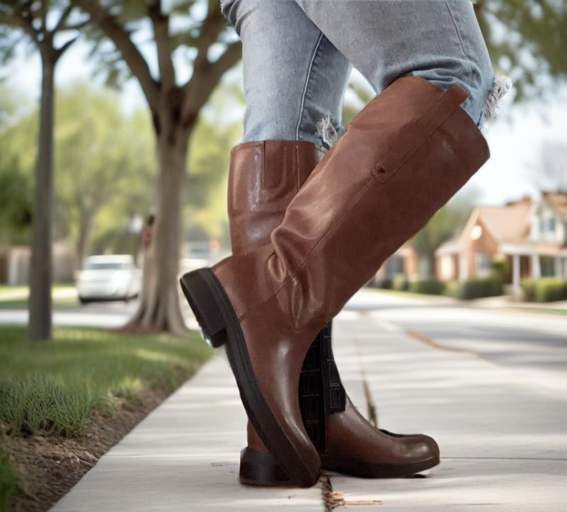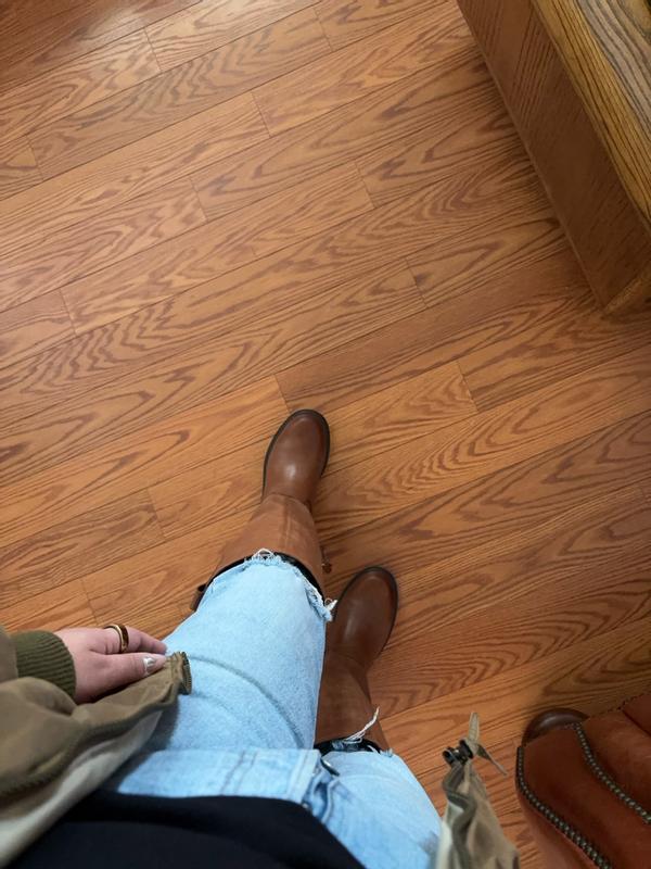Make sure you measure your calf from the widest part of your calf to see what size you need! I love how inclusive the sizes are! The soles are well constructed non skid too! They don’t make that awful black mark on wood floors like a cheap boot would! The leather is genuine and comfortable to wear. So stylish and don’t make my feet sweat at the end of the day.