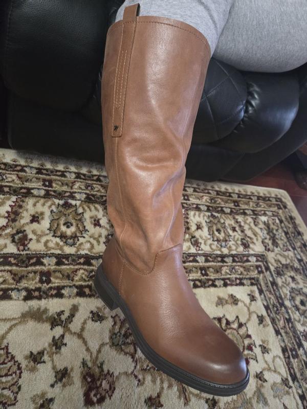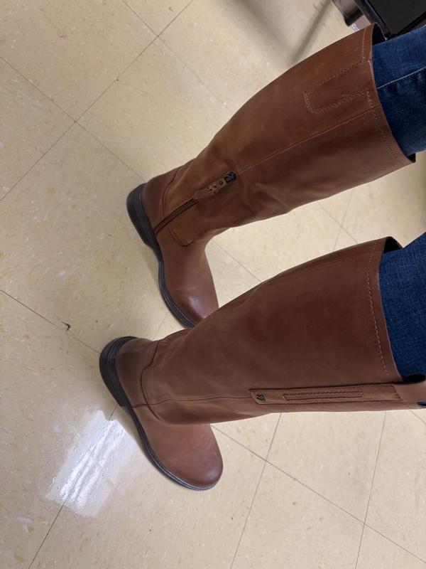 I completely agree with the other reviewer. These are very wide boots. I used the chart and originally ordered the wide calf size but had to return for normal. The suede is very soft but thin so they do have a slouchy appearance. I had no problem using Happy Returns. I'm happy with the boot but do think they are not worth full price.