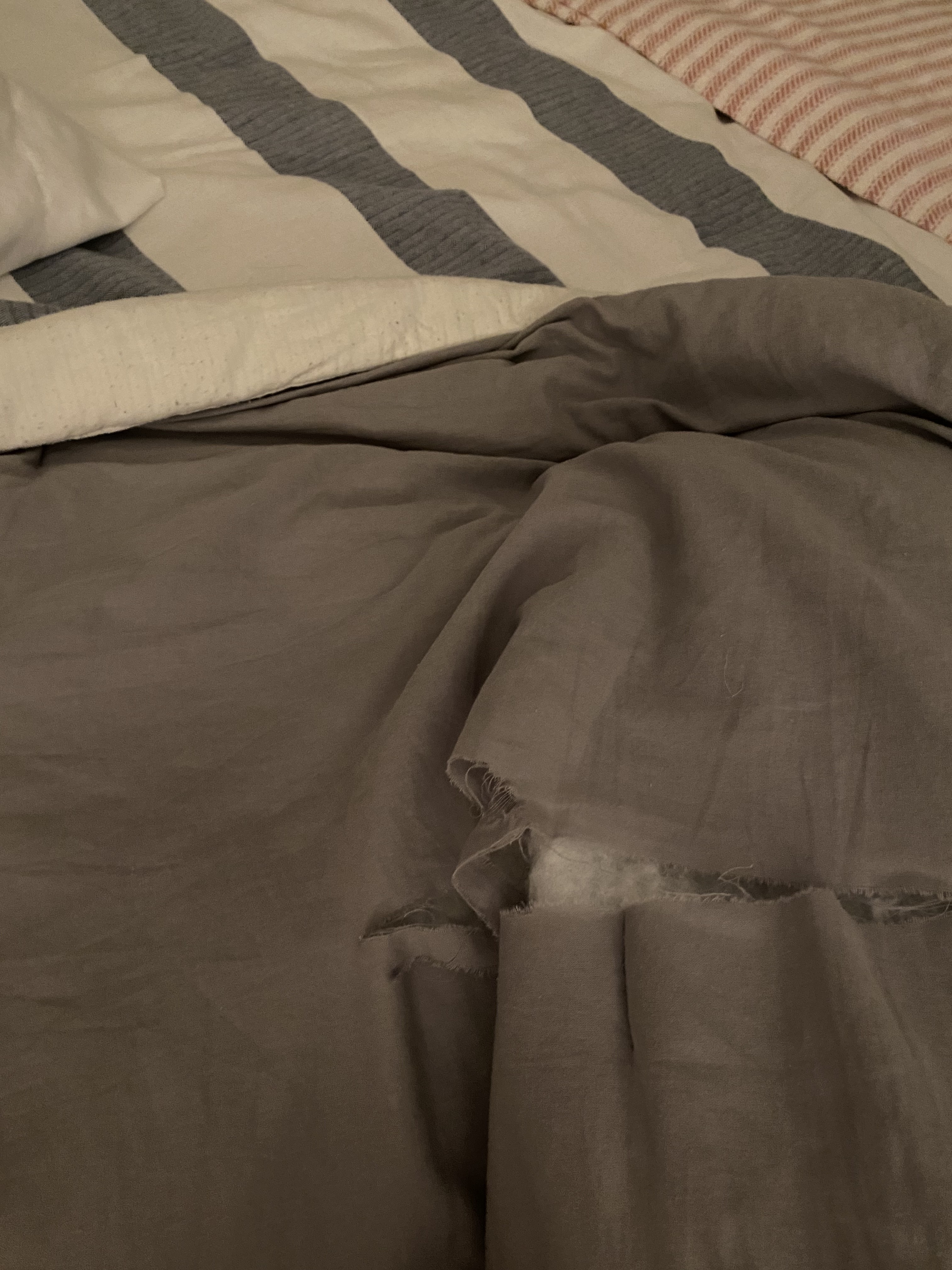 The internal side ripped. Went to pull the covers up while laying and heard large rip. Nothing sharp even close to it and it ripped exposing the inside.