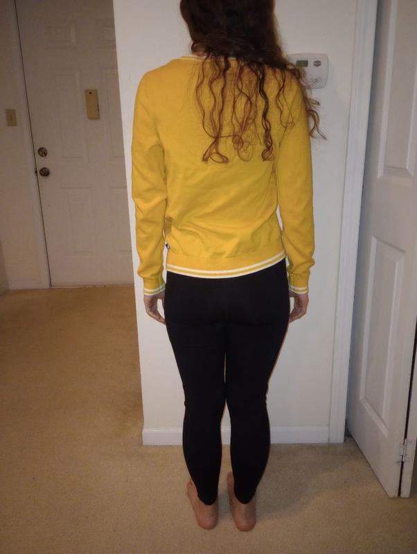 This Nautica sweater feels AMAZING! It’s 100% cotton which was was a win for me. I chose the yellow color because it’s one of my favorite colors and can be worn year round. The durability is also good which leads me to believe it won’t shrink once I wash it.