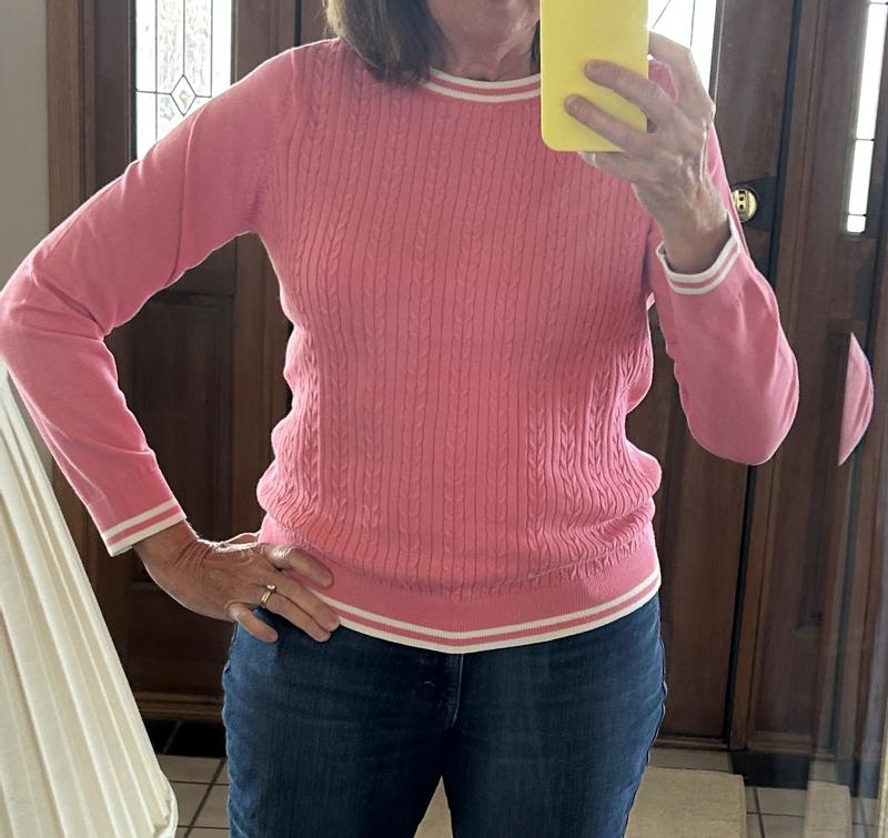 Women's Cotton Cable Knit Crewneck Sweater