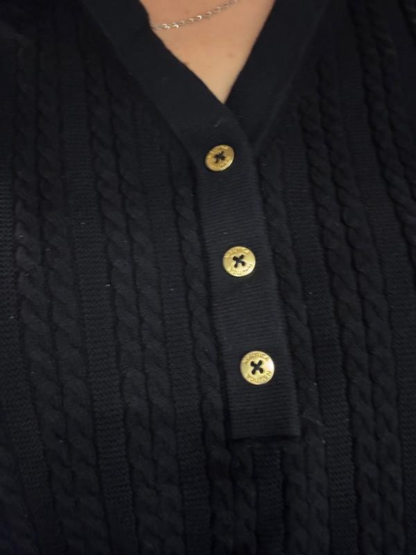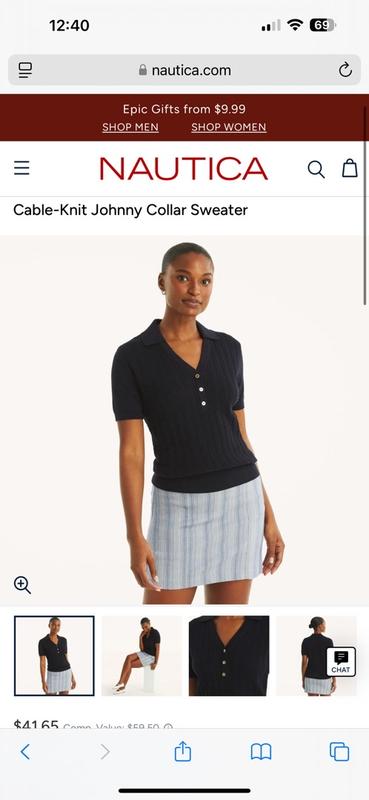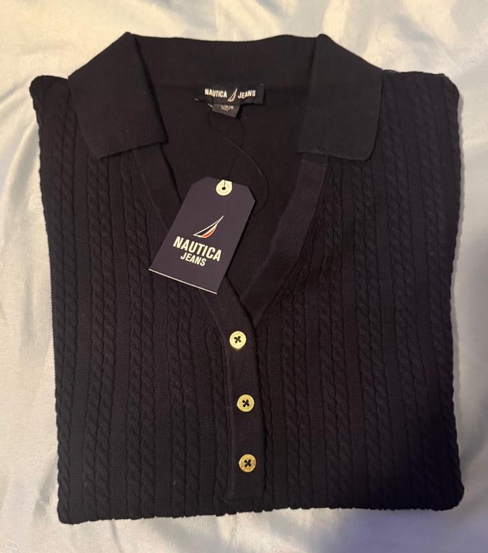 I returned this sweater-polo in yellow. The color was not at all what it looked like in the photos, it was very short (I do have a longer torso), and just did not look very good, in my opinion.