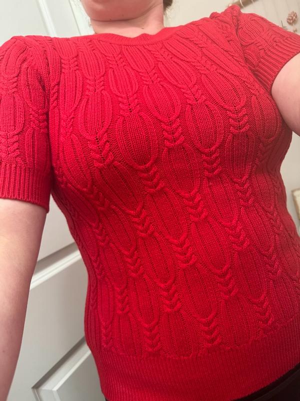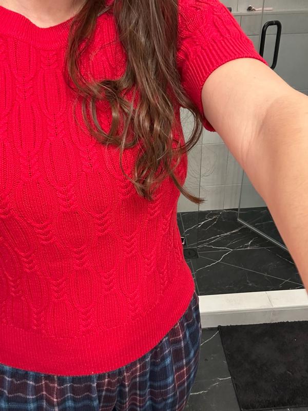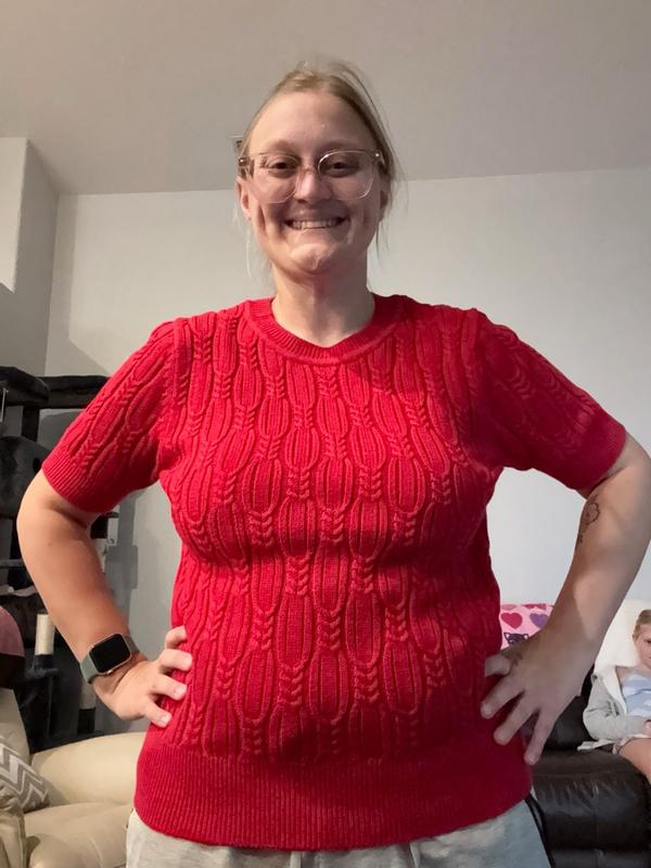 I absolutely love this sweater! It's true to size and fits perfectly without feeling too tight or too loose. The cotton material is soft and comfortable for all-day wear, and the cable-knit detail gives it a classic look. The bright red color is gorgeous in person - vibrant, eye-catching, and perfect for the season. I received so many compliments while wearing it! Definitely a new favorite in my wardrobe.
