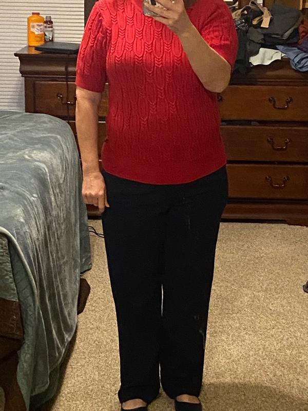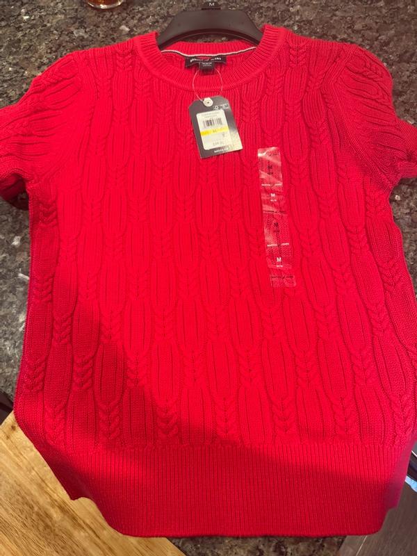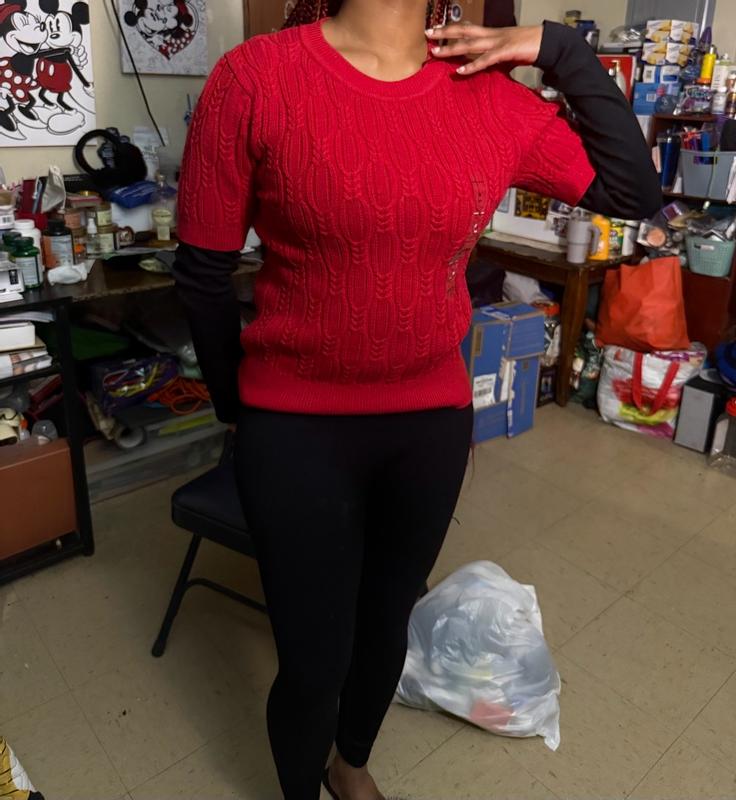 This sweater does run a little small. I like my sweaters to be a little bigger. It is a really well made seater. I love the red color. It looks pink in the picture but it is a true red. I like the short sleeves because living in Texas it only gets super cold a few days a year.. It is not a really heavy sweater which is a plus. Overall . I would say size up and it is perfect!