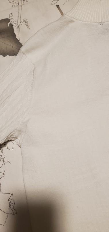 This looked thicker in the photo, and i assumed the back was cable knit as well but if you zoom into the photo you can see that it is not cableknit on the back and you can sort of tell that it is of thinner quality. Still a decent sweater, and of good quality, just really pay attention to what you purchase online