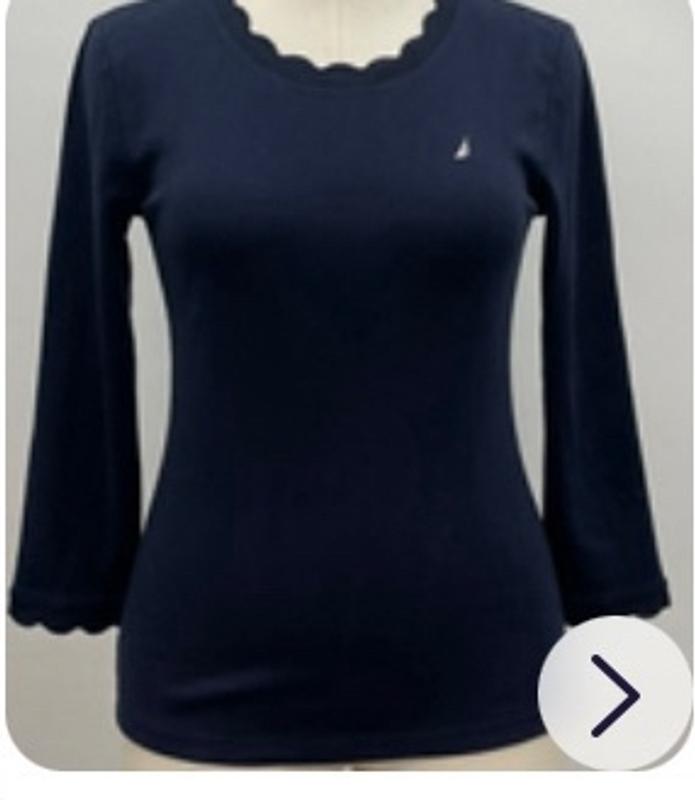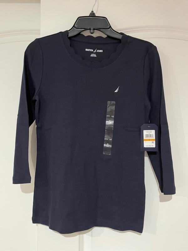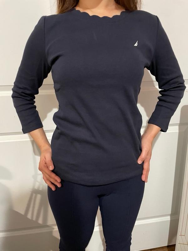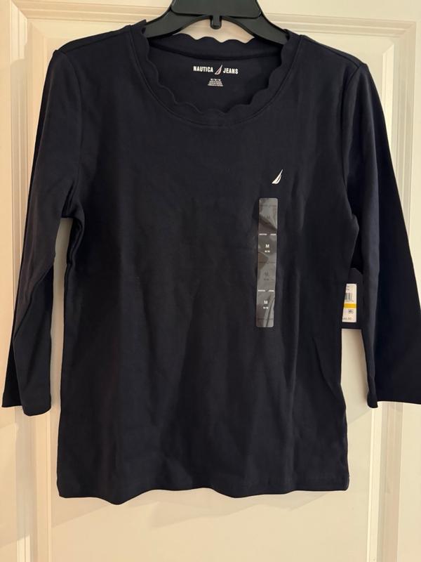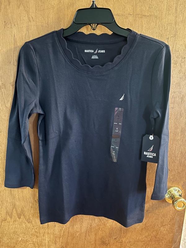 Women's Cotton Scalloped-Neck 3/4-Sleeve Top